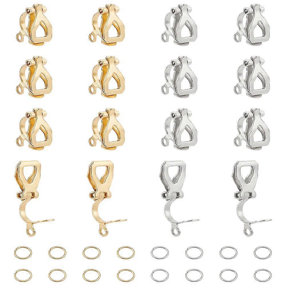 16Pcs 2 Colors Stainless Steel Clip-on Earring Findings 12mm Long Earrings Converter Components Gold Silver Dangle Earring Clips with Open Jump Rings