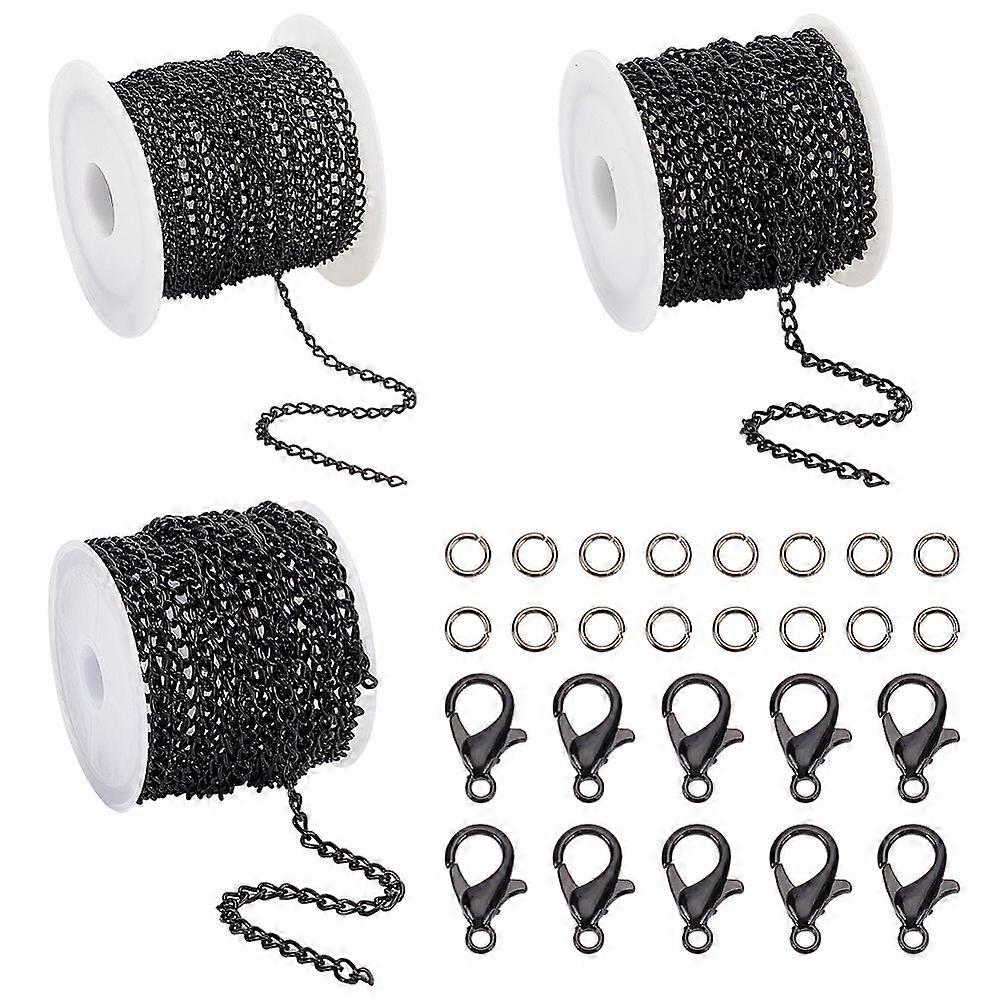 36 Feet Curb Chain Link, 2/3/5mm Twisted Chain Links Black Metal Craft Chain with 100pcs 4mm 21 Gauge Open Jump Rings 20pcs Lobster Claw Clasps for DI
