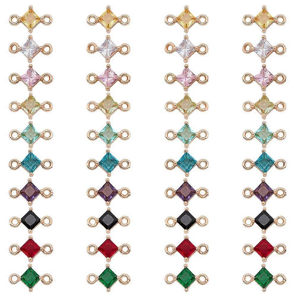10 Colors 40Pcs Rhombus Connectors Faceted Charms 11mm Colorful Glass Charms Links Transparent Glass Links Pendants with Brass Findings for DIY Bracel