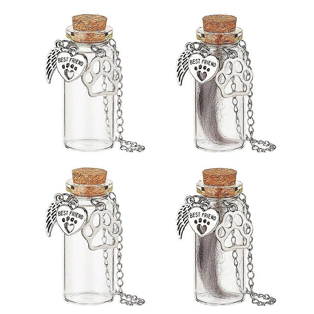4PCS Pet Fur Memorial Jar Pets Hair Storage Glass Bottle with Heart Paw Pendants and Cork Stopper Dog Cat Keepsake Memorial Urn for Pet Ashes Hair Los