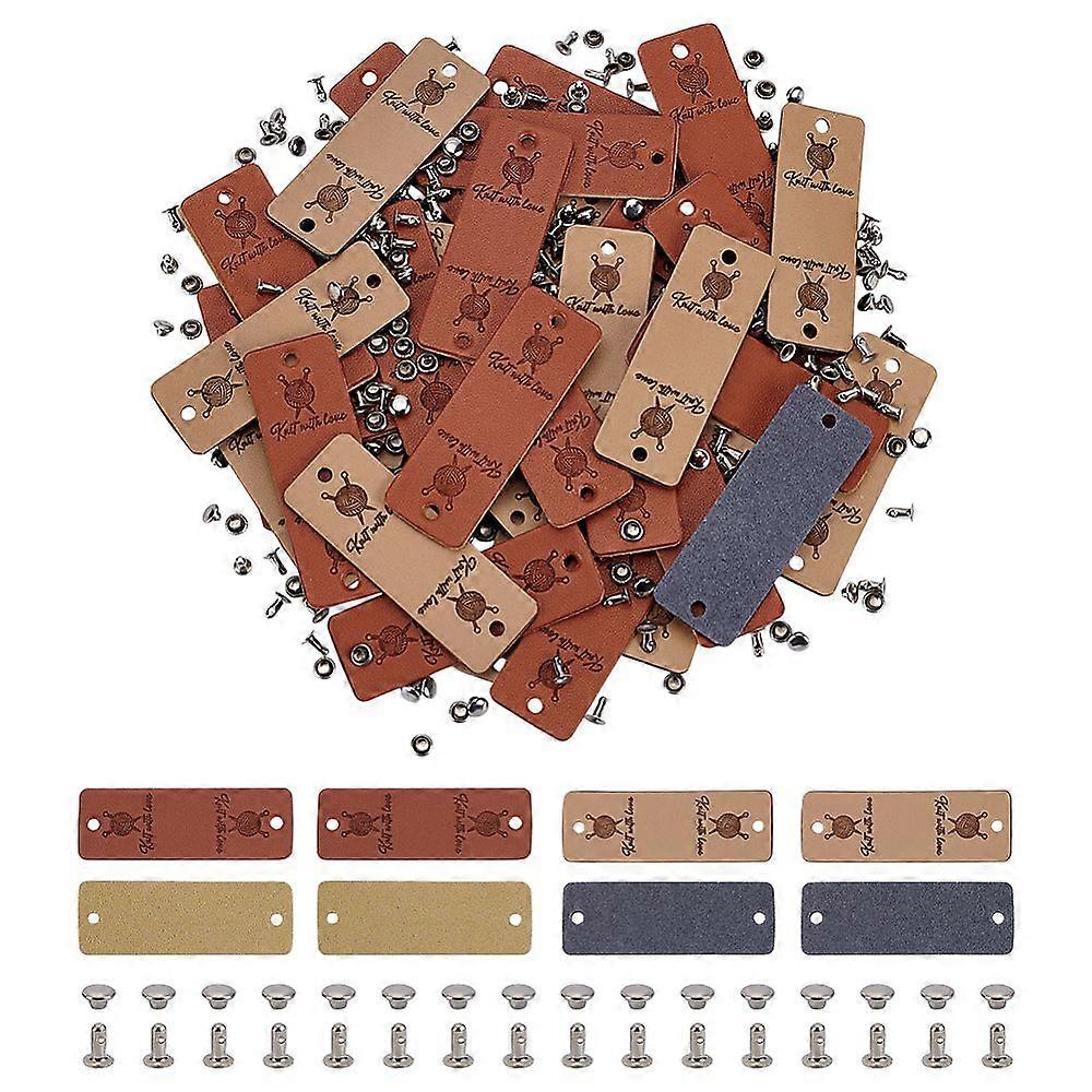 40 Sets PU Leather Label Handmade Tag with Rivets 2.2inch Beige Chocolate PU Leather Clothing Labels with Hole Rectangle Shape Handmade Leather Tag fo
