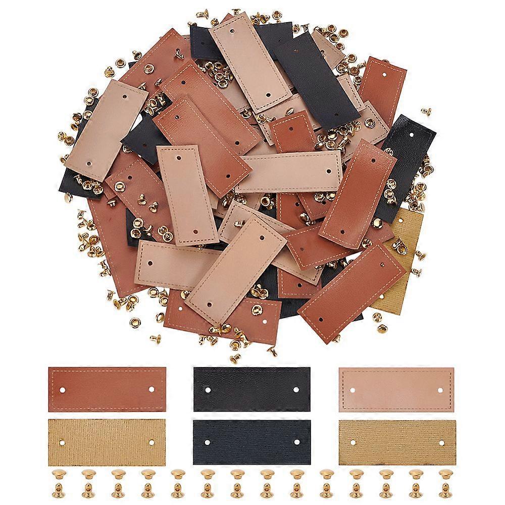 60 Sets PU Leather Label Handmade Tag with Rivets 3 Colors 1.96x0.78inch Clothing Labels with Hole Rectangle Shape Blank Handmade Leather Tag for Sewi