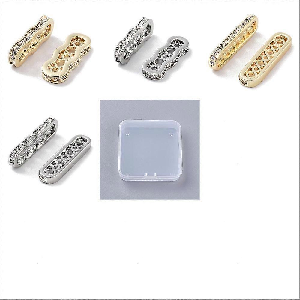 8Pcs Zirconia Spacer Bars 18K Golden Plated Brass Rectangle Spacer Bar Beads Connectors Gold Platinum 3 Hole Multi-Strands Links for Jewellery Making