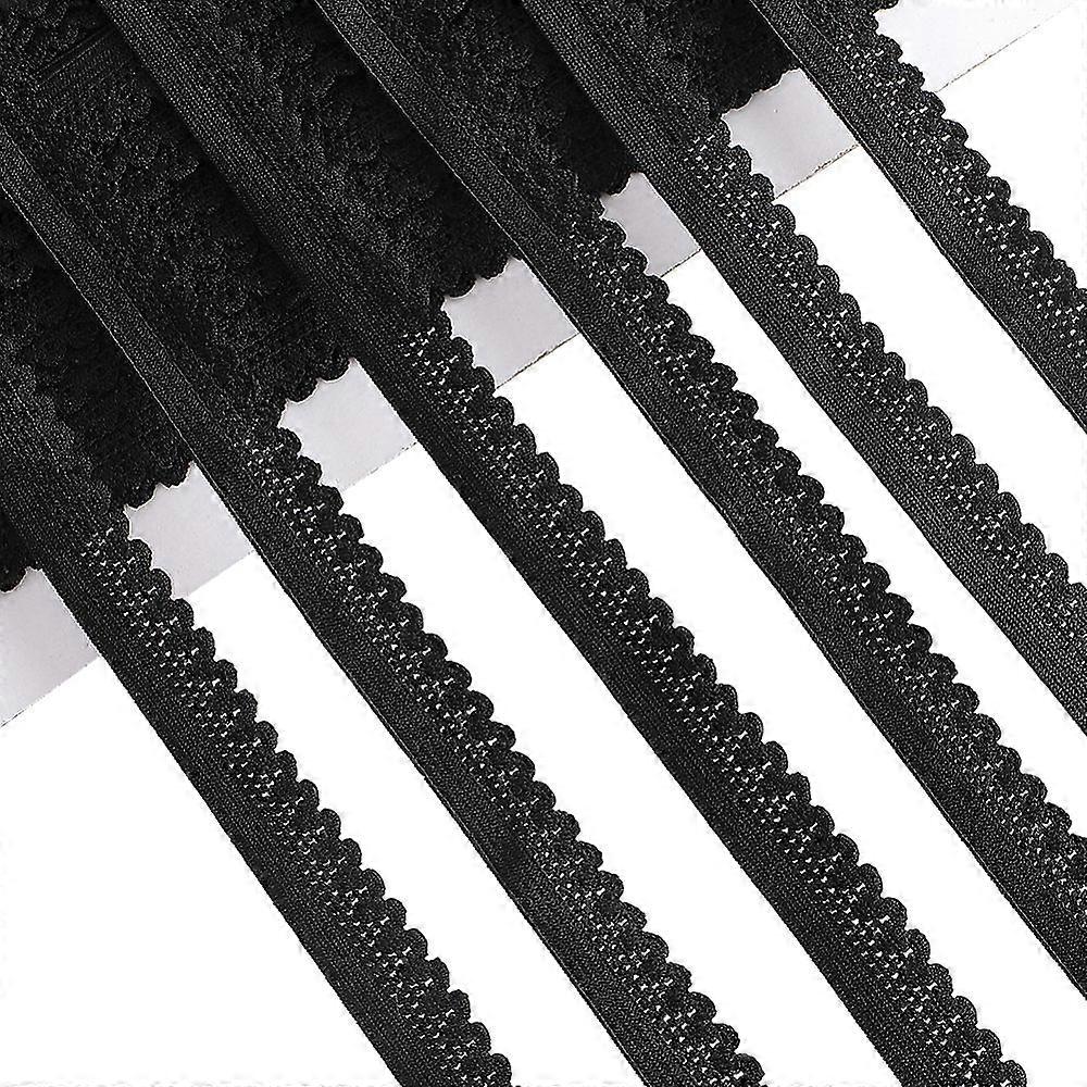 15 Yards Elastic Lace Trim 12mm Wide Black Stretch Edge Lingerie Edging Trimming Webbing Crocheted Lace Cord Ribbon for DIY Sewing Crafts Garment Chok