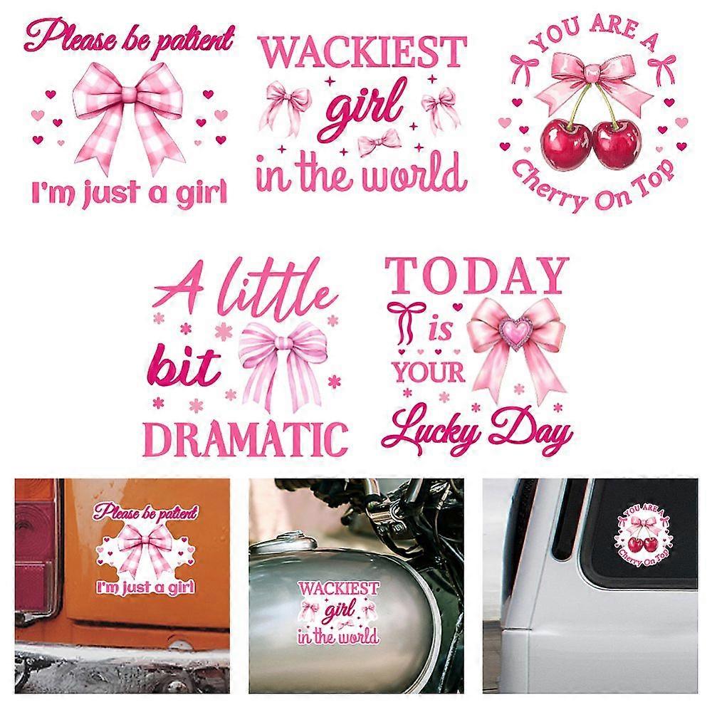 5 Styles Pink Bowknot Car Vinyl Decal Stickers, Funny Meme Quote Aesthetic Bows Vinyl Decal Self Adhesive Waterproof Car Stickers for Windows Trucks S