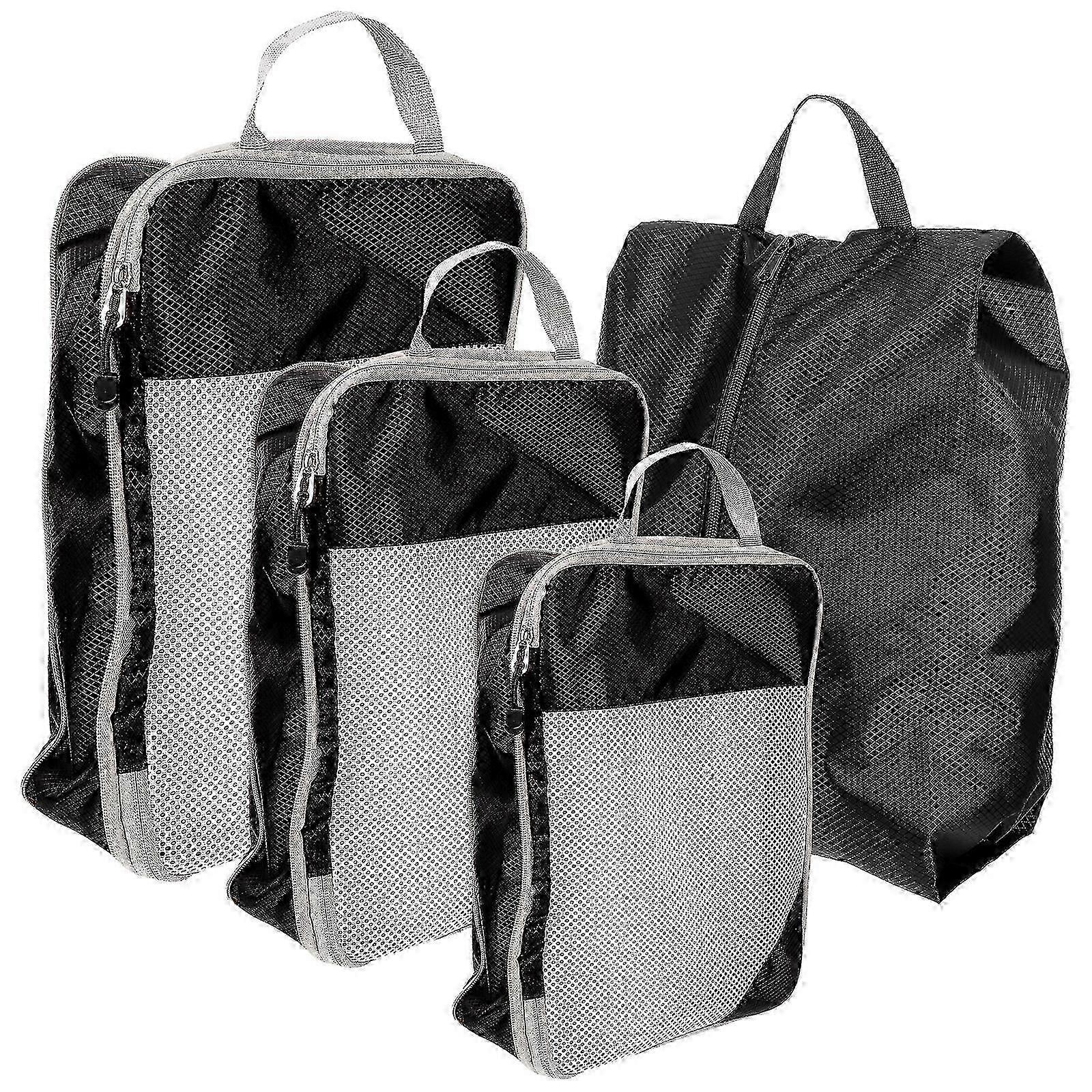 Description Our travel storage bags keep your travel items clean and tidy. The waterproof material ensuring that the bag can withstand high-intensity wear during travel. Lightweight, waterproof, portable, foldable, easy to store design. Features - Color: Black - Material:Waterproof fabric, cloth - Size: 41.00X32.00X2.00cm/16.11X12.58X0.79in(shoe bag) - Size: 36.50X27.00X2.00cm/14.34X10.61X0.79in - Size: 43.50X26.70X1.00cm/17.10X10.49X0.39in - Size: 31.50X22.00X2.50cm/12.38X8.65X0.98in - The material is safe and light, which is wear resistance and practical for the lasting time use. - Appropriate size and capacity, lightweight for convenient carry when outdoor travel. - They a re suitable for business travel, vacation, hiking, camping, daily travel, etc. - Easily store your travel items, such as clothes, cosmetics, wallets, shoes, toiletries, daily necessities, etc. - Organize your belongings, keep your belongings tidy and save space in your suitcase. Package List3 x travel storage bags 1 x shoes storage bag