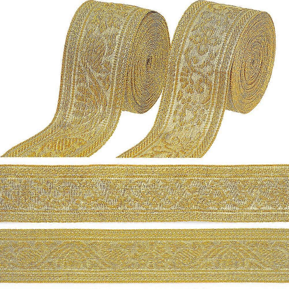 4 Bundles 2 Styles Gold Embroidered Ribbon Vintage Woven Jacquard Trim Tape Polyester Metallic Embroidery Fabric Applique Trimming for Sewing Making C