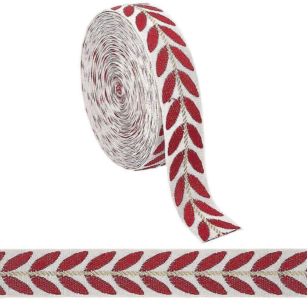10 Yards 1 Inch Red Embroidered Ribbon Trim Tape Polyester White Jacquard Ribbons Boho Leaf Pattern Embroidery Woven Fabric Applique Trimming for Sewi