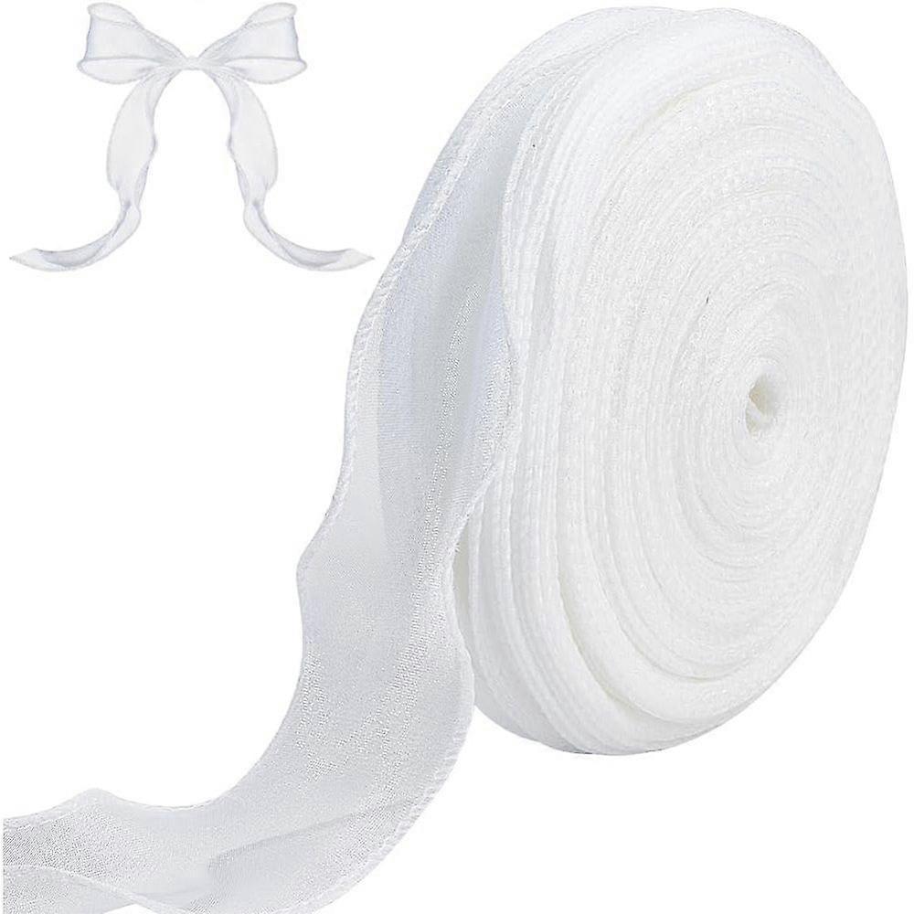 50 Yards 1-3/5 Inch White Wired Chiffon Ribbon Sheer Tulle Solid Roll Organza Ribbons Wired Woven for Gift Wrapping Wedding Bouquet Home Decor Hair Ac