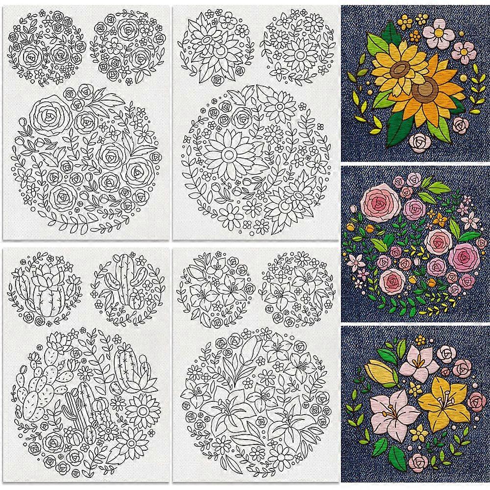 12Pcs Flowers and Leaves Water Soluble Hand Sewing Stabilizers, 8.3"x11.7" Rose Lily Embroidery Pattern Stabilizer, 4 Sheets Cactus Sunflowers Stick a