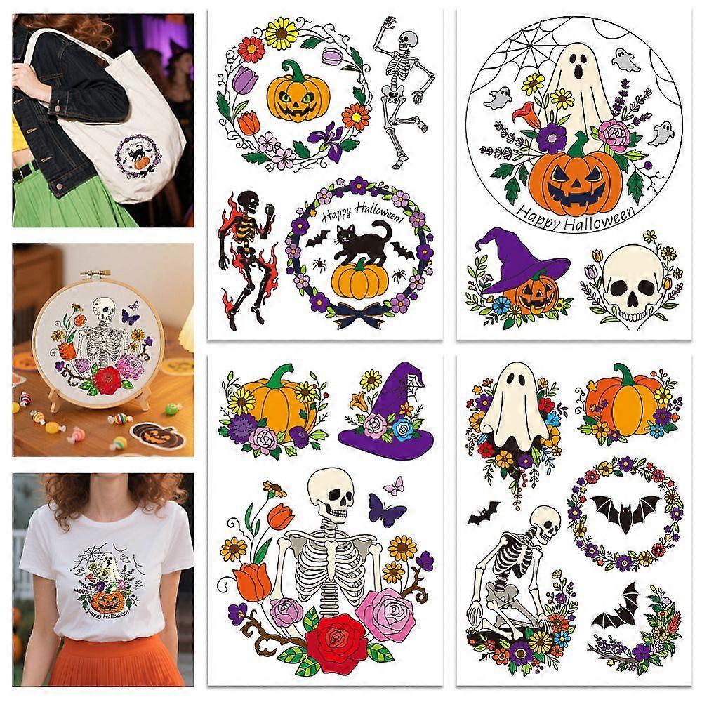 4 Sheets Pumpkin Colorful Water Soluble Hand Sewing Stabilizers Flowers Wash Away Embroidery Stabilizer Wreath Embroidery Stitch Practice for Embroide