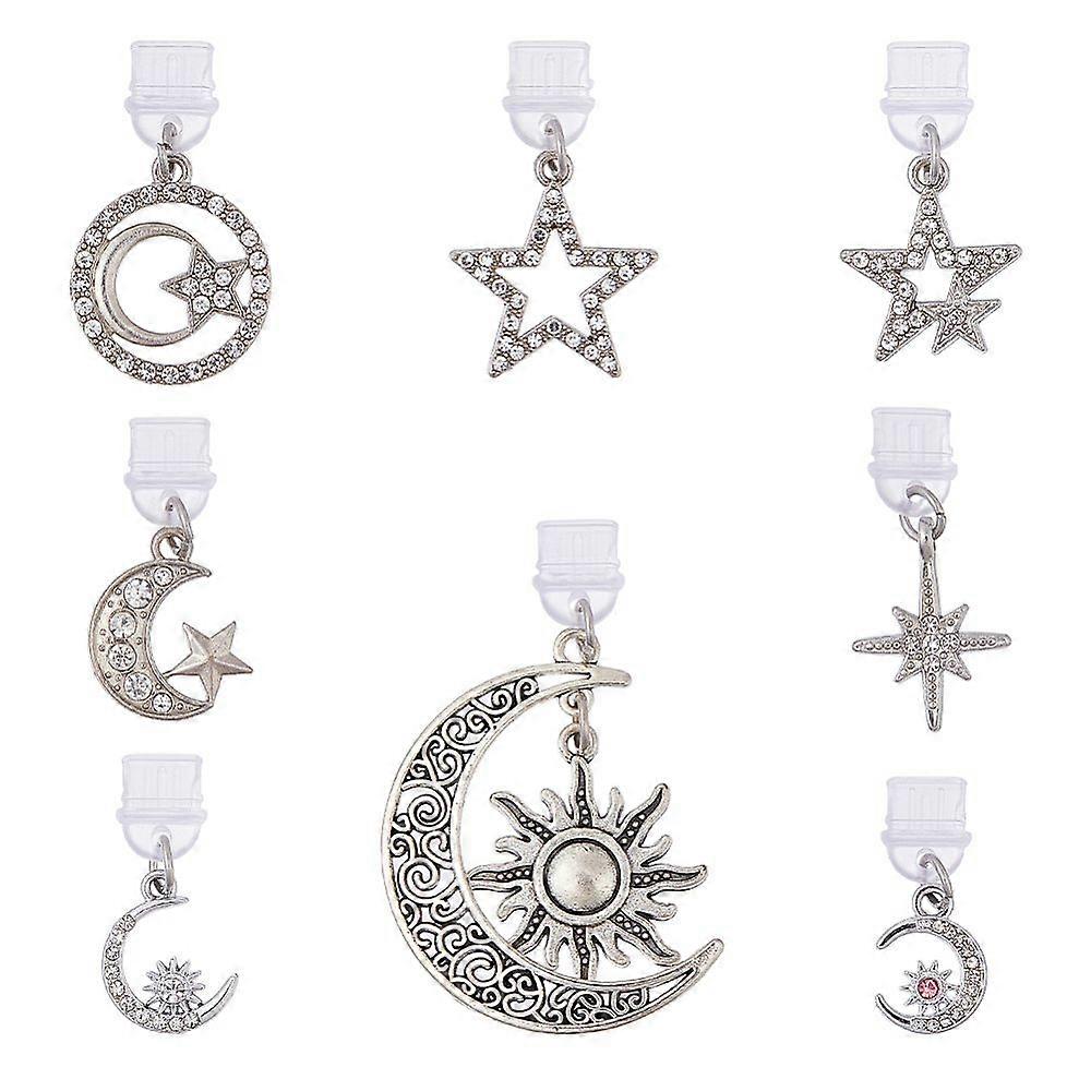 8Pcs Dust Plug Charms Bulk Moon Star Type-C Charging Port Charm Cell Phone Charm Plug Cover for Earphone PVC Dust Plugs with Alloy Charms for Cellphon