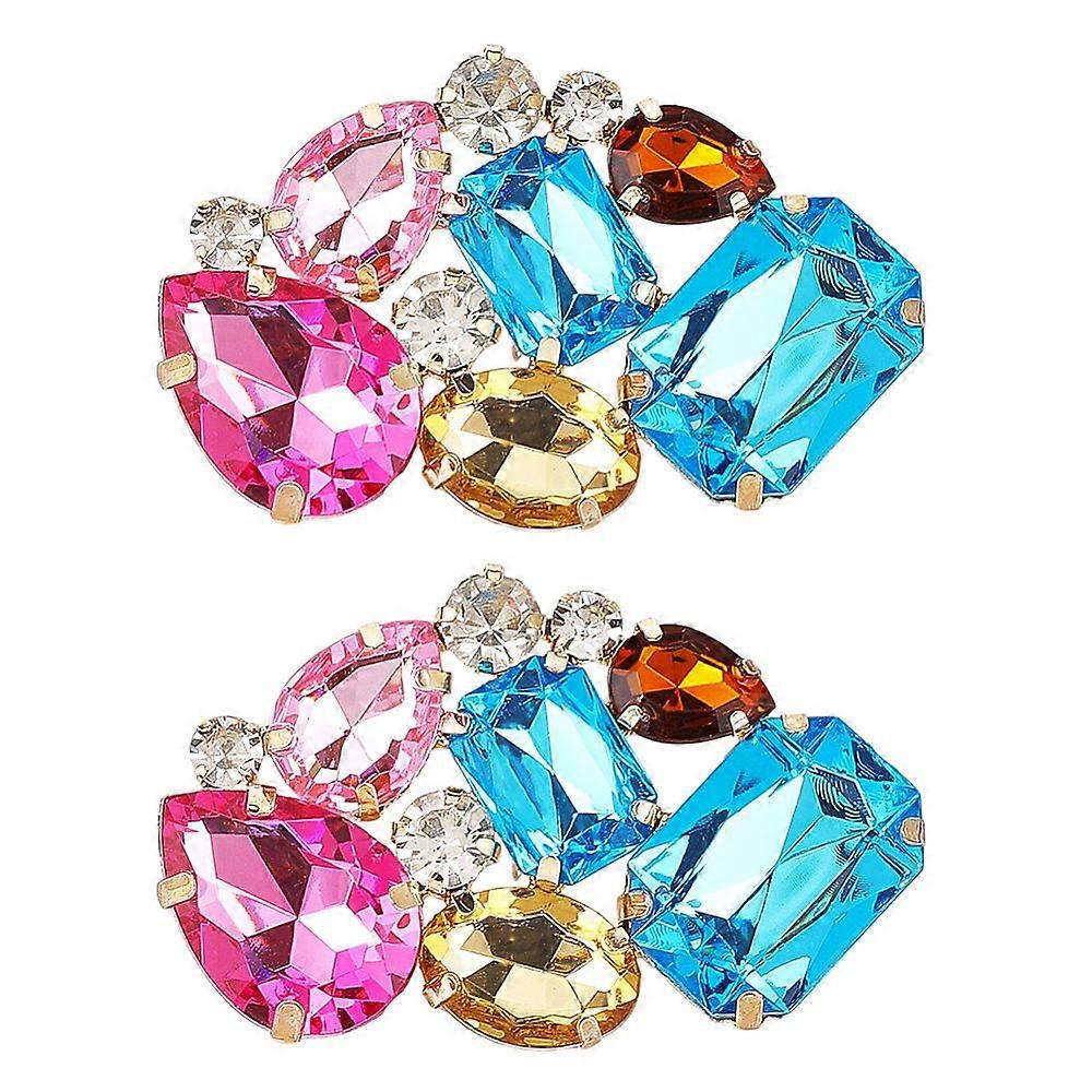 2Pcs Acrylic Colorful Shoe Clips 39x62x9mm Irregular Rhinestones Charms Shoe Buckles Alloy Jewelry Decoration Teardrop Rectangle Oval for Women Party