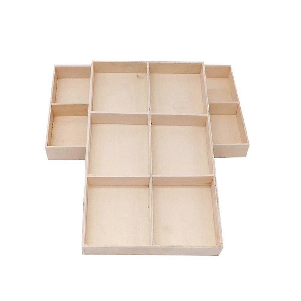 2PCS 6.693.940.67 Inch 6 Grids Wooden Sorting Tray White Unfinished Trinket Display Tea Organizer Stackable Jewelry Tray Divided Storage Chest Drawer
