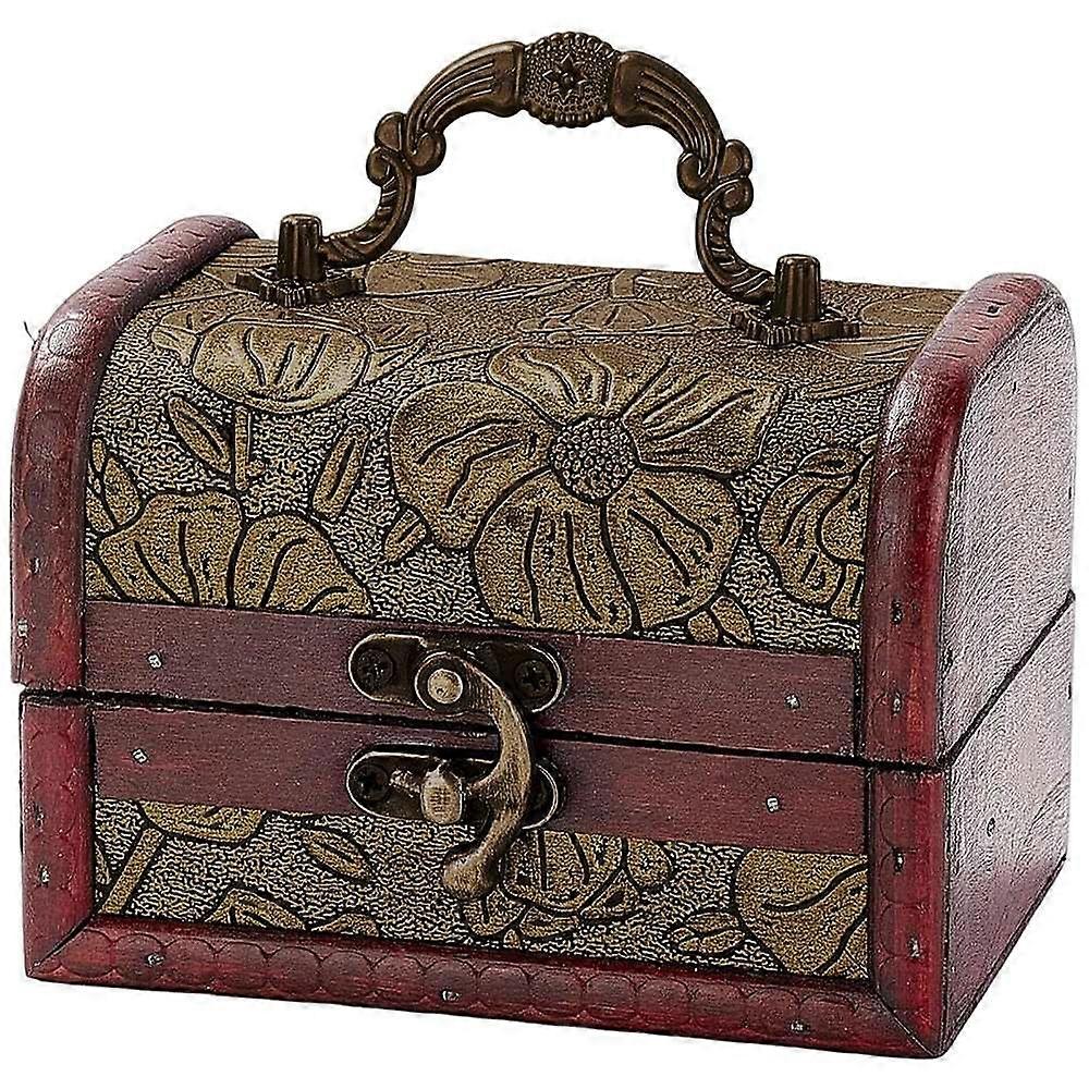 Mini Vintage Wooden Jewelry Stroage Cases Retro Pirate Treasure Chest Keepsake Box Small European Decorative PU Leather Treasure Box with Handle for J