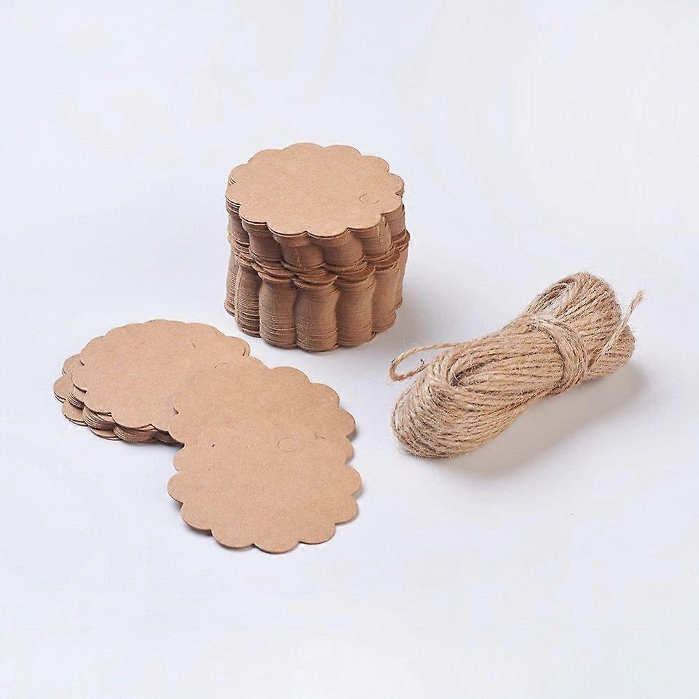 100Pcs Paper Peru Flower Jewelry Display Price Label Cards with Jute Twine String, 2.36 Inch Diameter, Round Shape, Ideal for Jewelry, Ring, Necklace,