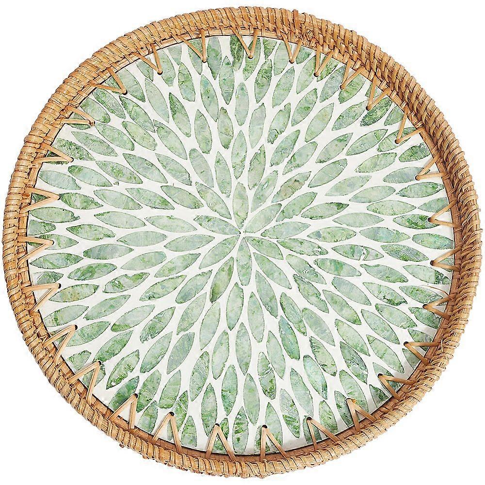 Round Rattan Tray Rattan Woven Serving Tray Wooden Base Hand Woven Basket Decorative Wicker Basket Organizer Tray for Table Decor Storage Display Brea