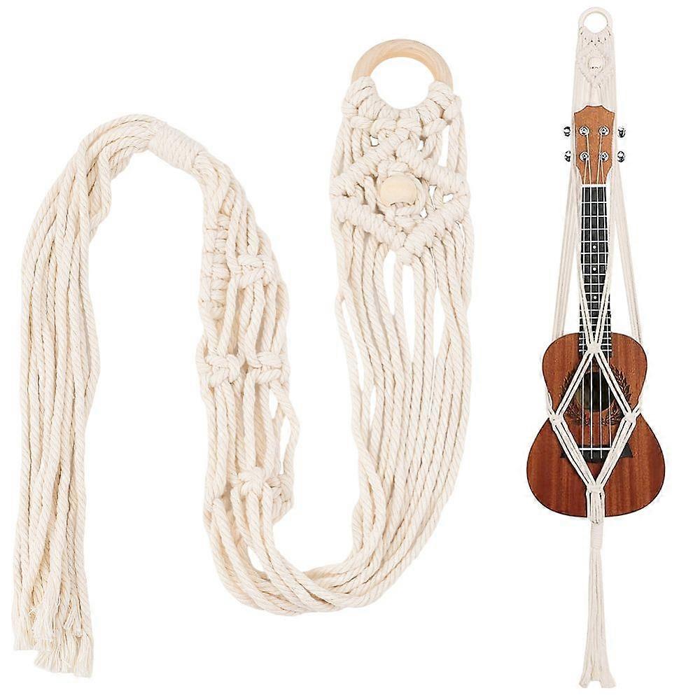 Macrame Ukulele Hanger White Guitar Wall Hangers 2.28" x 37.4" Cotton Boho Hanging Stand Holders Hangers Alternative Kit with Wood Ring Head for Acous