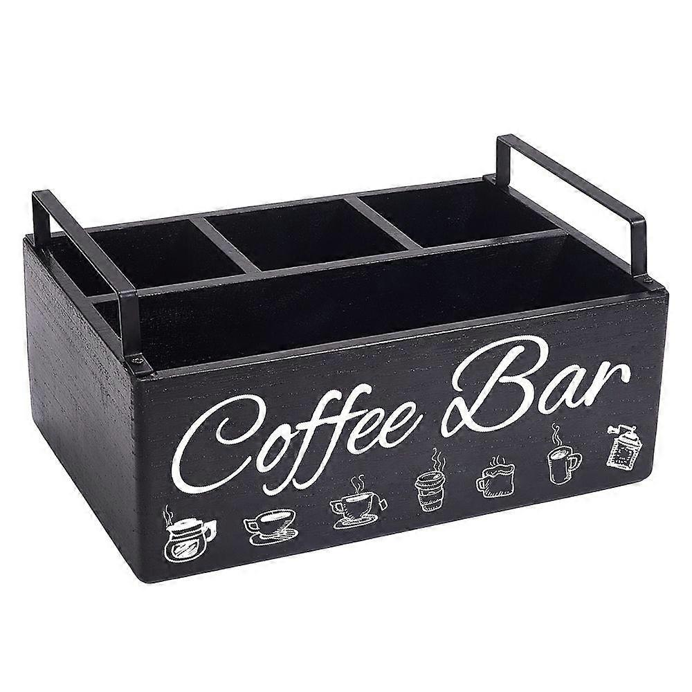 Coffee Station Organizer Wooden Coffee Bar Accessories Storage with Handle Farmhouse Kcup Coffee Pod Holder Basket Coffee Bar Box for Countertop Sugar
