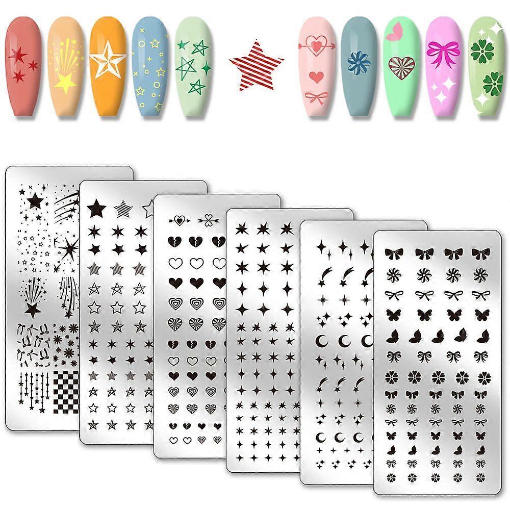 6pcs Stars Moon Pattern Nail Stamp Plate Heart Print Art Template Stainless Steel Nail Image Plate Butterfly Pattern Nails Art Stencils for Women DIY