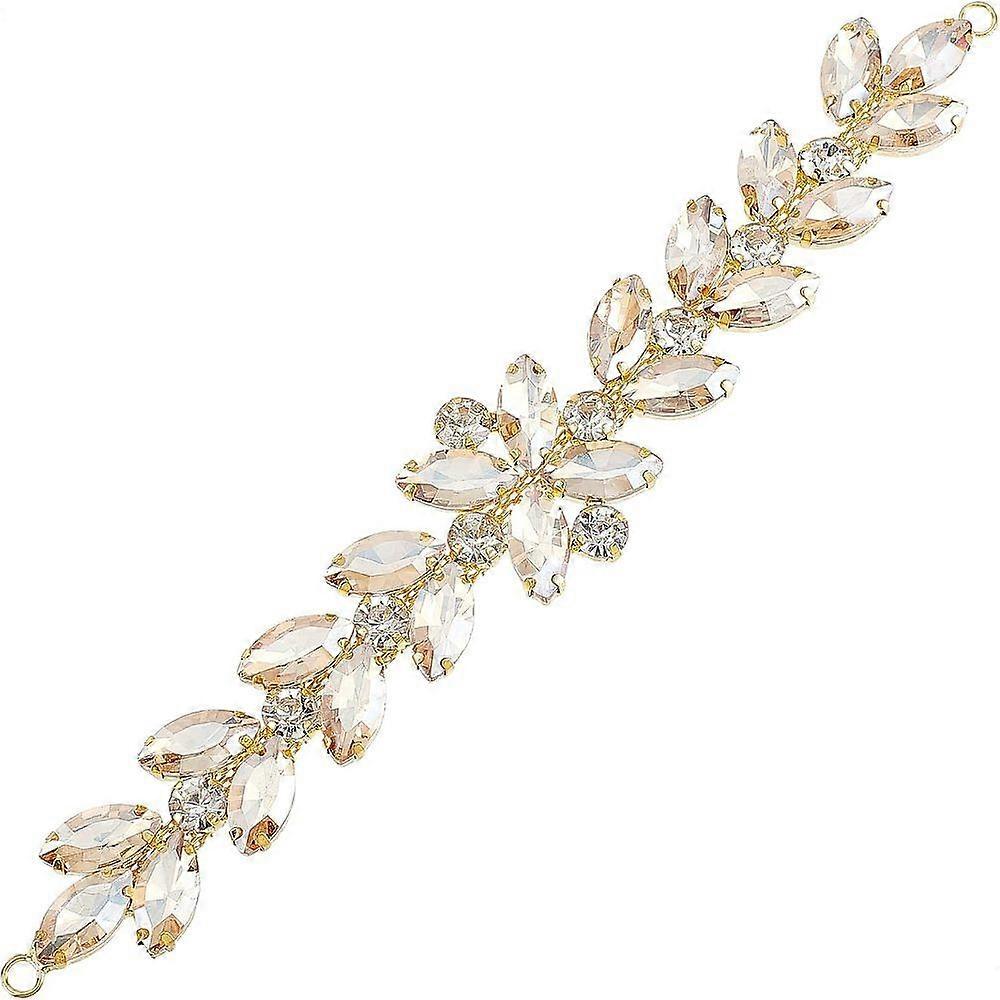 Bling Flower Leaf Rhinestone Trim (Gold Champagne, 8.4 inch) Shiny Horse Eye Applique Chain Trim with Hole Sparky Jewelry Rhinestone Chain for Necklac