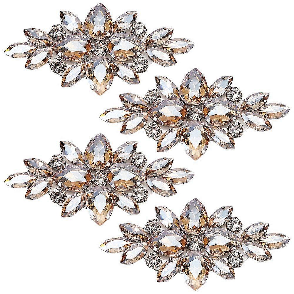 4 PCS Flower Glass Rhinestone Applique Patches Iron on Sandy Brown Rhinestone Patches Wedding Bridal Decorative Patches Floral Beaded Applique Patches