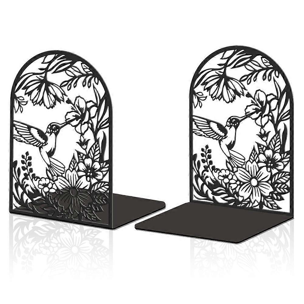 2pcs Book Ends Large Size Black Heavy Duty Book Stopper Hummingbird Flower Decorative Book End Used on Desk Office Home Library School for Thick Books