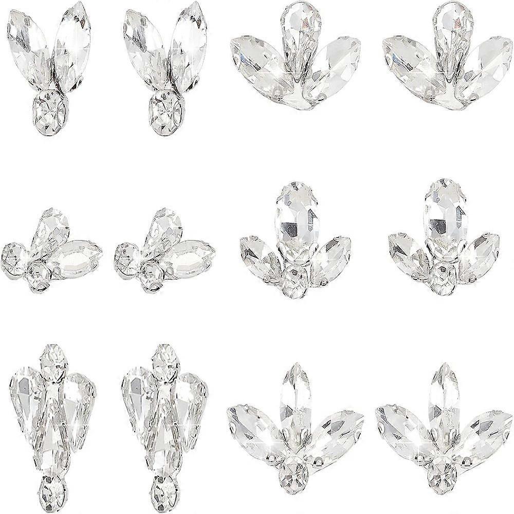 12PCS Leaf Glass Rhinestones - 6 Style Hot Fix Shiny Applique, Scattered Leaves Mixed Shapes Glass Applique Patch for Wedding Dress
