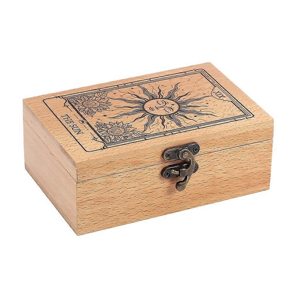 Sun and Sunflowers Beech Wooden Tarot Cards Storage Box with Vintage Metal Clasp Engraved Jewelry Tarot Card Box for and Holy Tools 5.12x3.23x1.46in