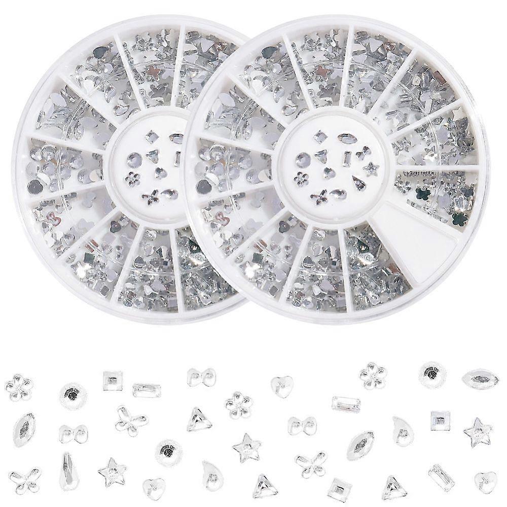 2 Boxes Silver Nail Rhinestones Kit 12 Shapes 3D Nail Art Diamond Flatback Charms and Gems White Glass Resin Glitter Flat Back Round Bead Set for Wome