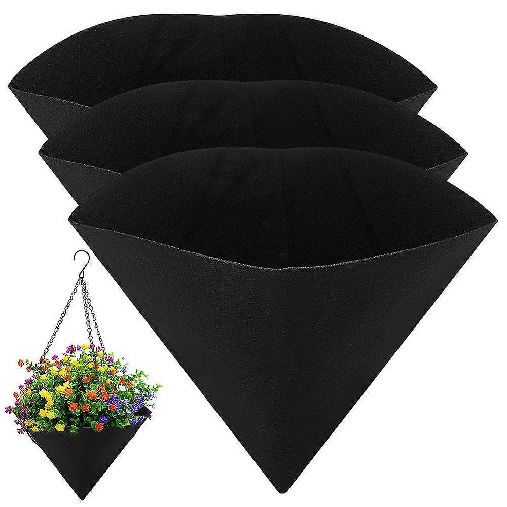 3Pcs Cone Shaped Hanging Basket Liners, 12 Inches Fabric Planter Inserts for Garden Decoration Black Felt Replacement Liner for Indoor Outdoor Flower
