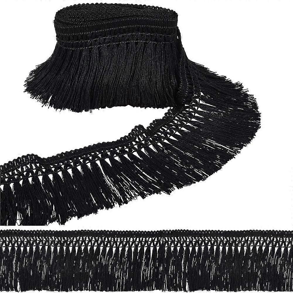 5.5 Yards 3 Inch Cotton Tassel Fringe Trim Black Sewing Lace Trim Ribbons Boho Vintage Long Fringe Trim for Sewing Edging Trimming Curtain Blanket Han
