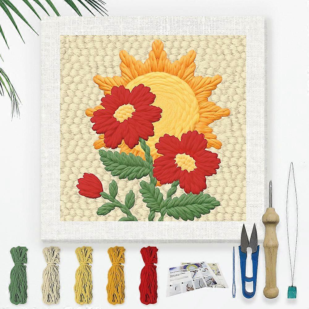 Flowers and Sun DIY Punch Needle Embroidery Kit for Adult Beginner, 9.4" Punch Stitching Craft Set for Starter with Frame, Fabric Pattern, Threader, Y