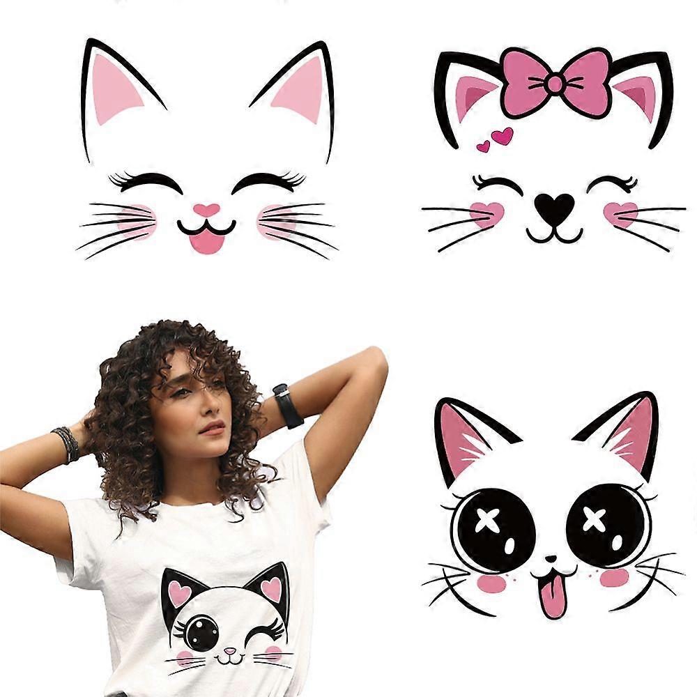 4 Sheets Cat Face Iron on Stickers, Cat Face Expressions Pattern Print Transfer Stickers Decals for DIY T-Shirt Jeans Backpacks Families Clothing Hat