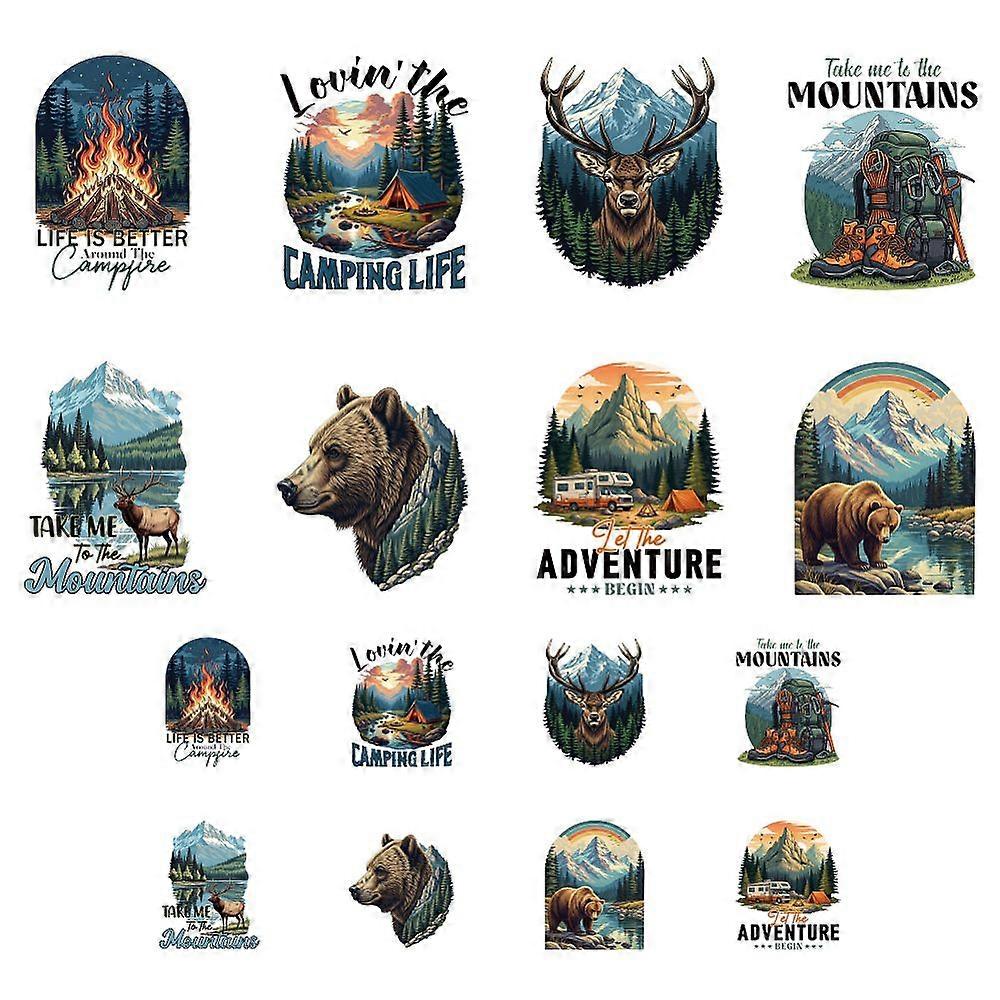 16 Sheets Iron on Transfers for T-Shirts Adventure and Camping Pattern DTF Transfers Ready to Press, Washable Iron on Decals for Women Girls Clothing