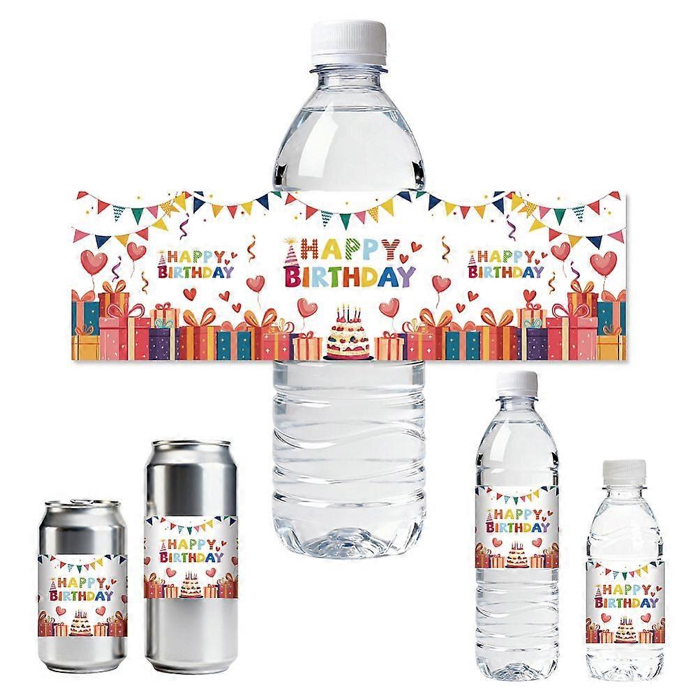 30pcs Water Bottle Labels Happy Birthday with Heart Balloon Waterproof Sticker, 8.51" x 2.51" Rectangle Water Bottle Wraps Sticker for Birthday, Anniv