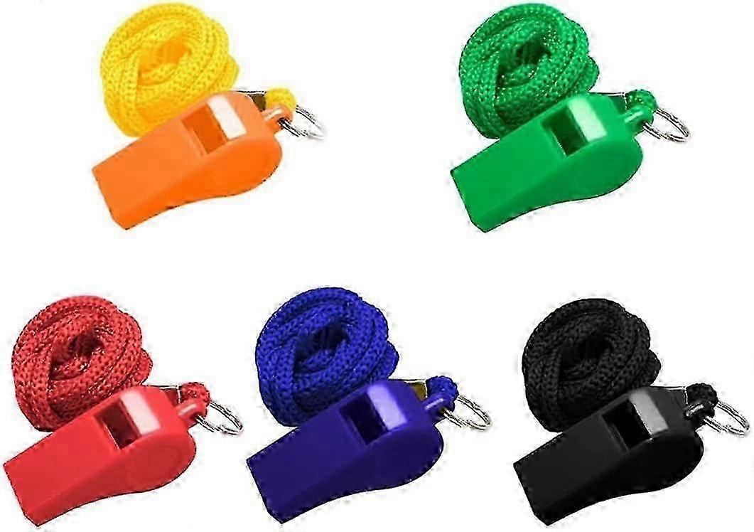 2026 Suitable Pack of 5 Plastic Whistles with Lanyard