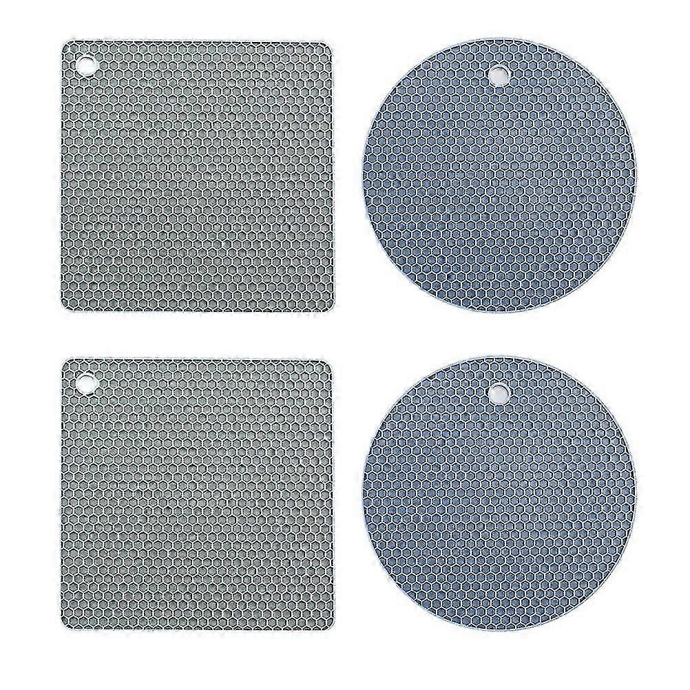 2026 Suitable 4Pcs Silicone Dining Table Insulation Mat Slip-Resistance Kitchen Use Honeycomb Shape Cup Mat Blue Circle And Gray Square