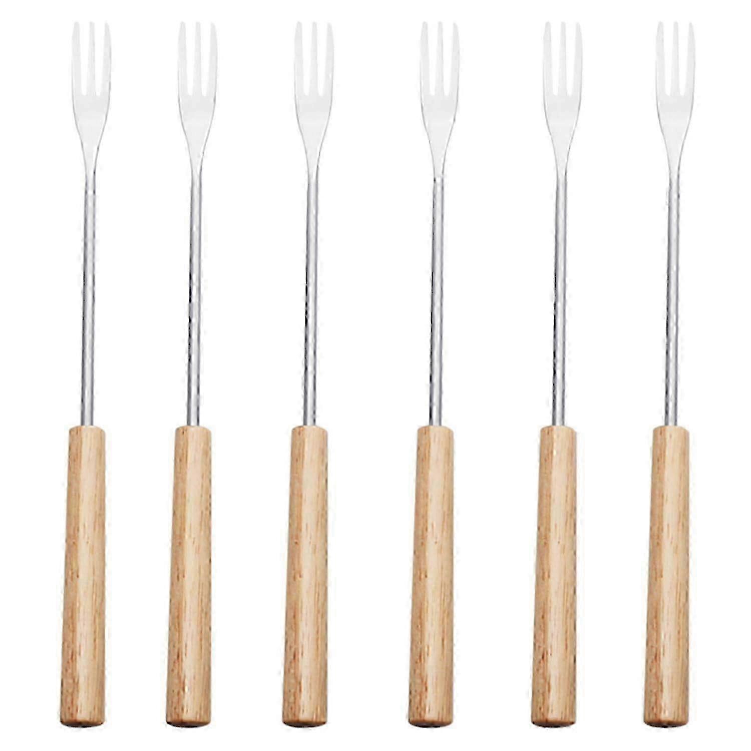 2026 Suitable Set of 6 Cheese Fondue Forks Fondue Cutlery Stainless Steel Cheese Fondue Cutlery with Heat Resistant Handle,Wood Colour
