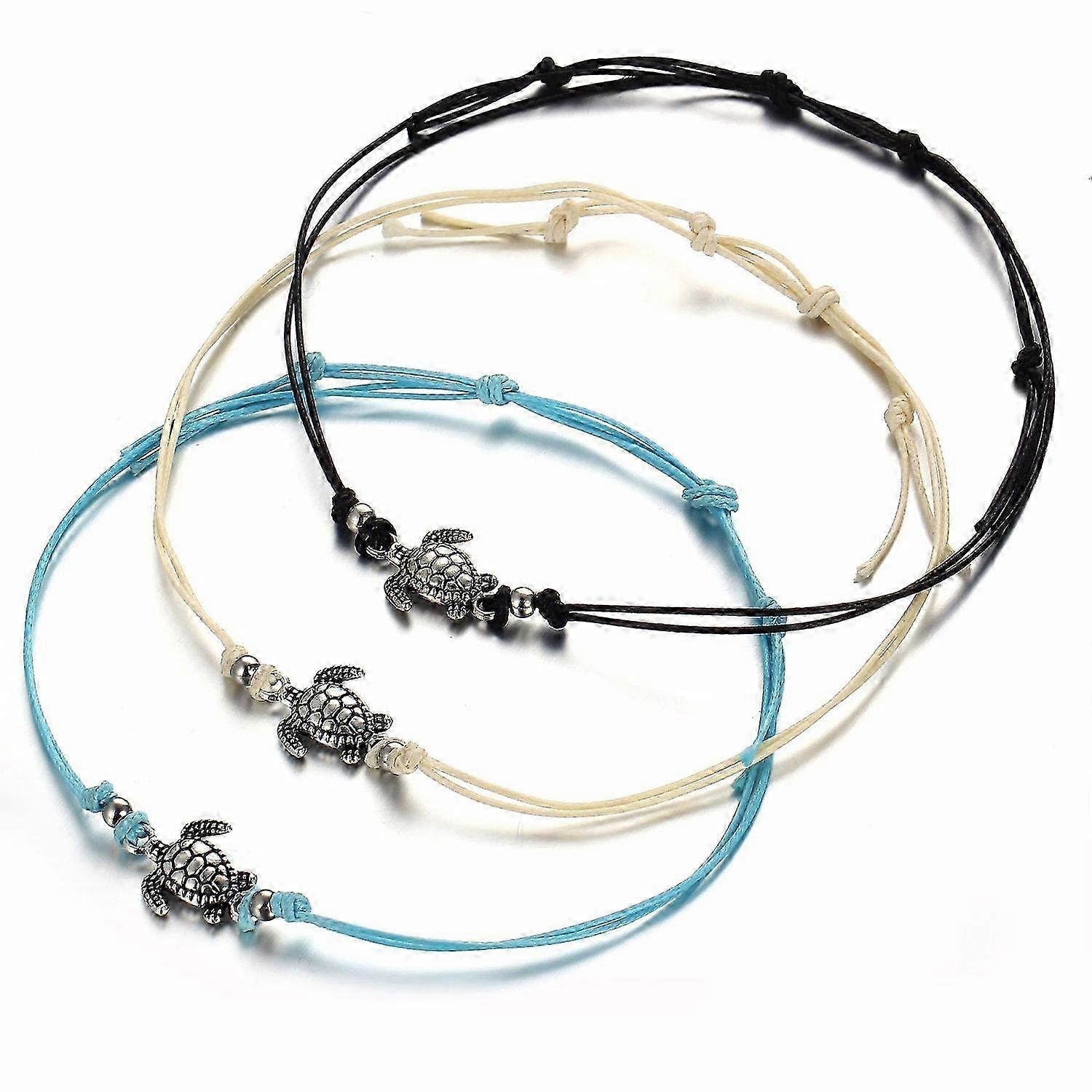 2026 Suitable New 3 Color Set Vintage Wax Rope Turtle Anklet Bracelet Ancient Silver Tricolor Turtle