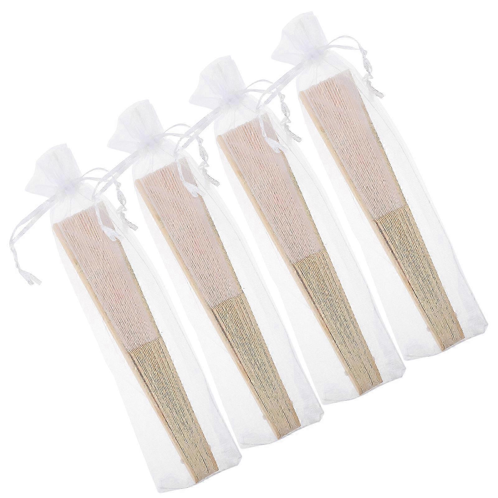 2026 Suitable White Chinese Folding Fans for Wedding Guests Handheld Fabric Fan with Gauze and Wood 4pcs