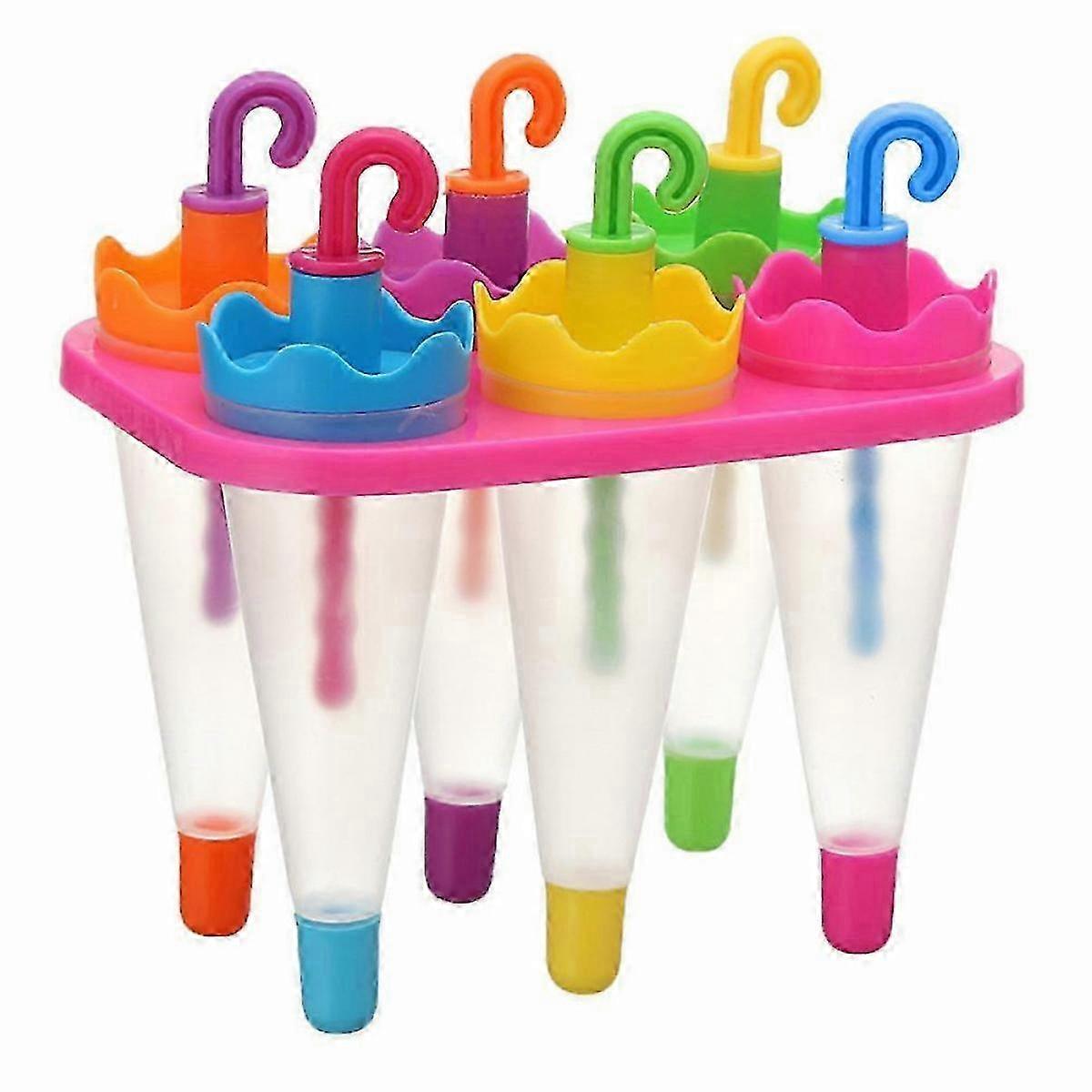 The item is a set of 6- umbrella shaped ice cream molds makers with different coloured handles, which are made of food-grade PP plastic for safe to use. Just add your favourite juice, fruit or yoghurt for a delicious and healthy snack that the whole family will love. Features - ColorAssorted Color - Material: Plastic. - Size: 16.50X15.50X10.50cm /6.48X6.09X4.13in - Min umbrella shaped , very and attractive. - Can be used to make 6 ice pops ice lollies at once. - for transfroming juices, purees, yogurt, applesauce, gelatin, fruit, ice cream and even pudding into delicious freezer ice pop. - Kids can create their own yummy flavors. Also great for parties and picnics. - Reusable design, easy to clean and use. Package list: 1 tray