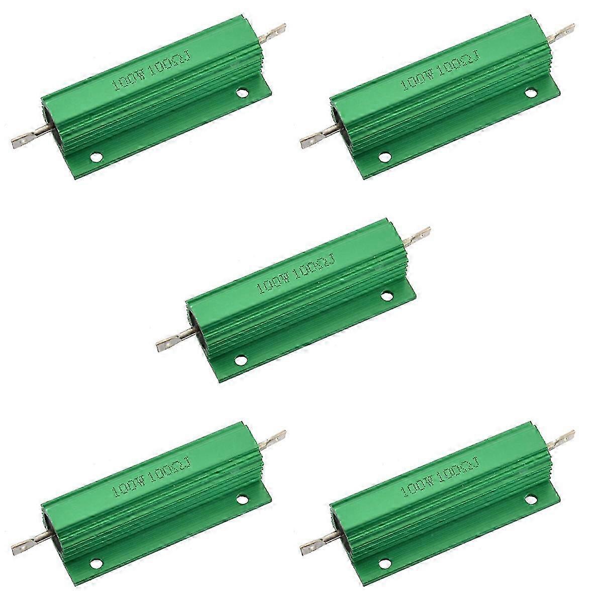 Product Name : Aluminum Housed Resistor;Resistance Value : 100 Ohm;Power Rating : 100W Resistance Tolerance : ± 5% (J);Body Size : 59 x 15mm/ 2.3 inch x 0.6 inch (L x D) Mounted Hole Size : 3.3mm/0.129 inch;Total Size : 82 x 21 x 17mm/ 3.2 inch x 0.8 inch x 0.7 inch (L x W x T) Casing Material : Aluminum;Color : Green Aluminum housing for heat dissipation, suitable for cooling plate installation, can be used in atrocious environment. Small size, high power load, standard and non-inductive winding types. High insulating capacity, good performance in vibration. Multiple connection modes, easy to install. Widely used in power supply, transducer, elevator, audio and high requirement equipment industry. Package Content : 5 x Aluminum Housed Resistor Only the above package content, other products are not included. Note: Light reflection and different displays may cause the color of the item in the picture a little different from the real thing. The measurement allowed error is +/- 1-3cm.