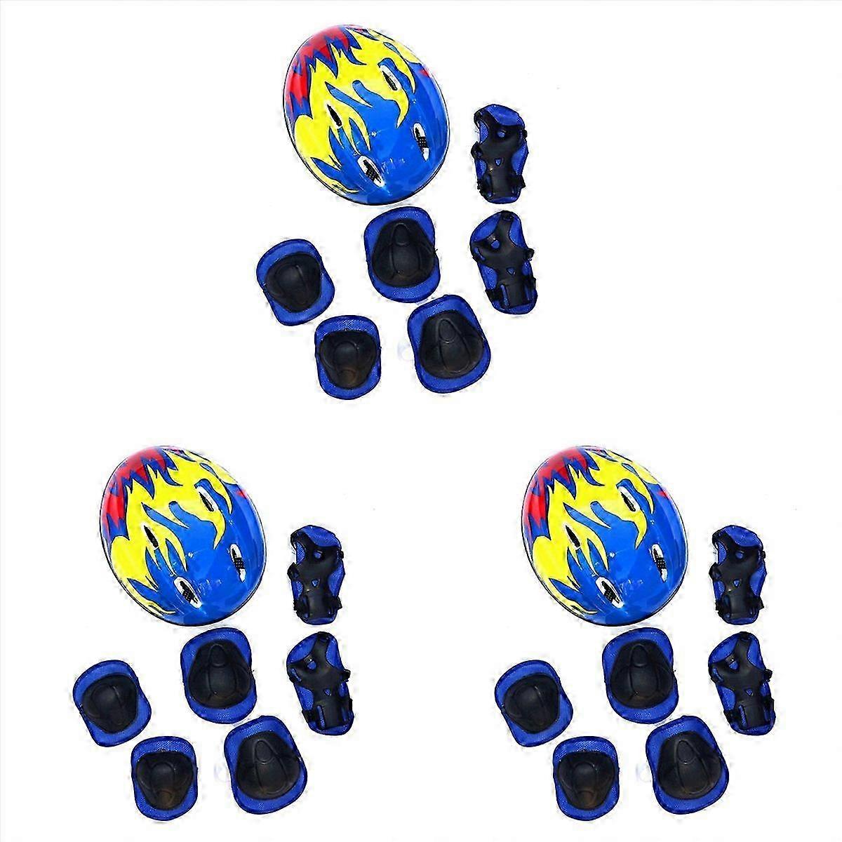 1. It is made of and soft filling material, equipped with hard plastic board and high-quality protective pad, the purpose is to provide safety and comfort. Sponge is non-slip, flexible material, breathable, odor-, moisture absorption and perspiration. 2. Be to your children from harm and give them safe and happy time. 3. The helmet is suitable for inline skating, skateboarding, cycling, scooter skating, scooter and other sports. Protective parts: elbow, head, knee, palm colour:Blue Material:EVA+sponge size:Head circumference: about 50-54cm Package Contents: 3 x Helmet 6 x wrist guard 6 x elbow guard 6 x knee guard Only the above package content, other products are not included. Note: Light reflection and different displays may cause the color of the item in the picture a little different from the real thing. The measurement allowed error is +/- 1-3cm.