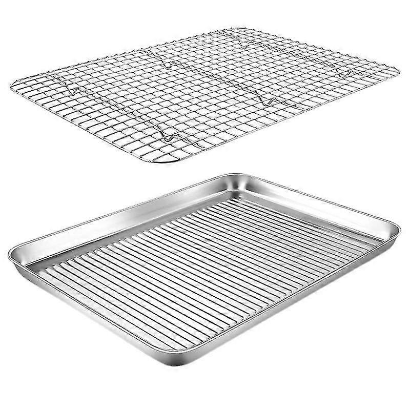 2026 Suitable 1 Set Stainless Steel Baking Tray with Mesh Rack Heavy Duty Non-stick Heat Resistant Food Grade Rect