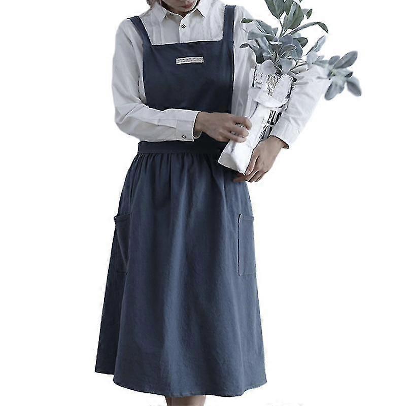 2026 Suitable Women Men Work Kitchen Flower Coffee Shop Solid Color Soft Washed Cotton Apron