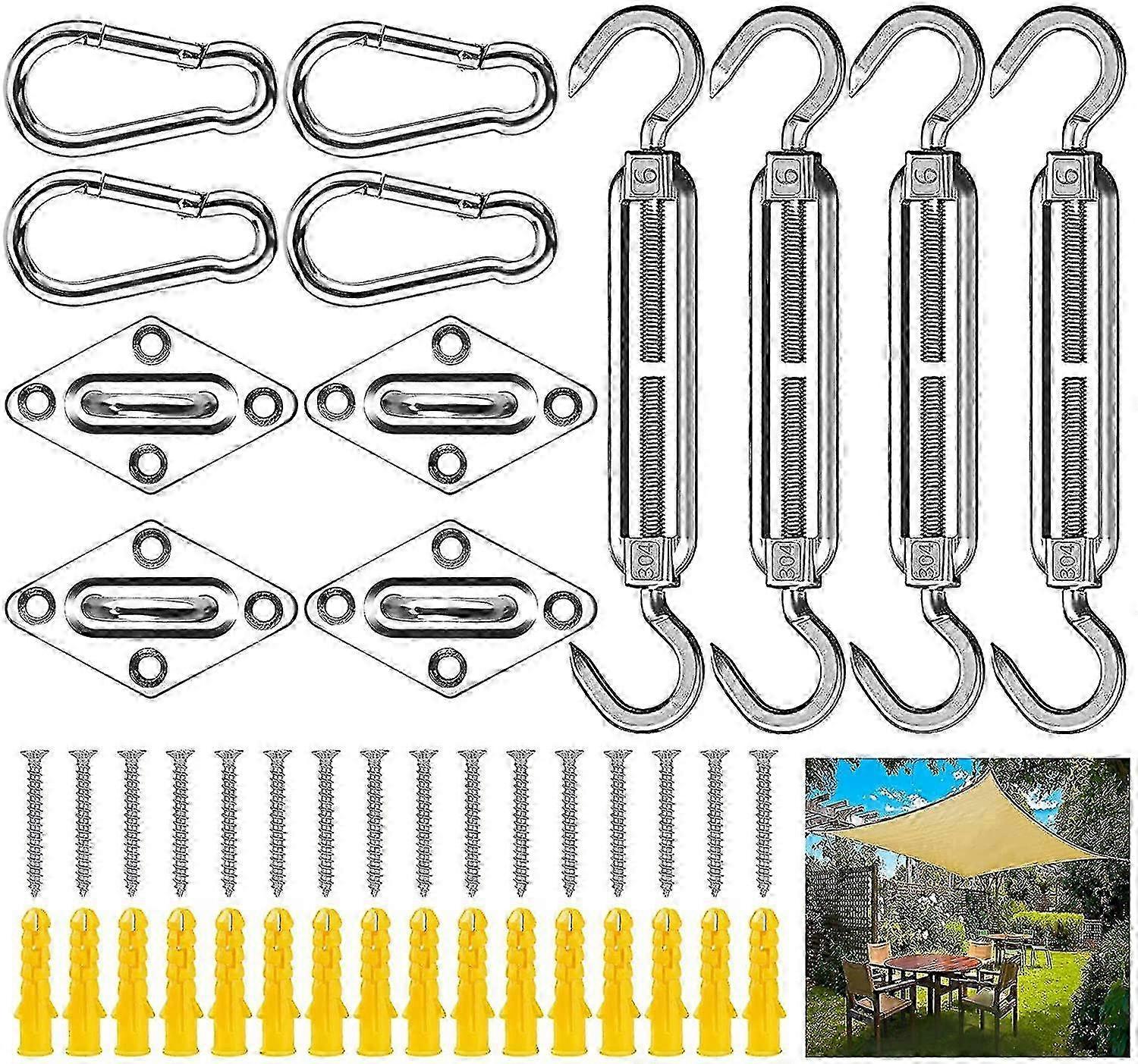 2026 Suitable Shade Sail Fixing Kit,44pcs Shade Sail Fixing Fixing Kit,304 Stainless Steel Hardware Fixing Accessories Kit