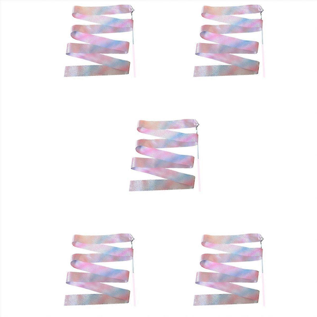 2026 Suitable 5 Pcs 2M Flashing Star Gym Ribbons Dance Ribbon Rhythmic Art Ballet Streamer Twirling Rod Rainbow St