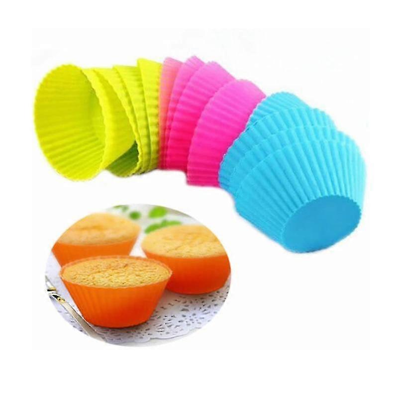 2026 Suitable 6/12/24Pcs High Temperature Resistant Food Grade Silicone Muffin Cup Molds Round Shaped Muffin Cake