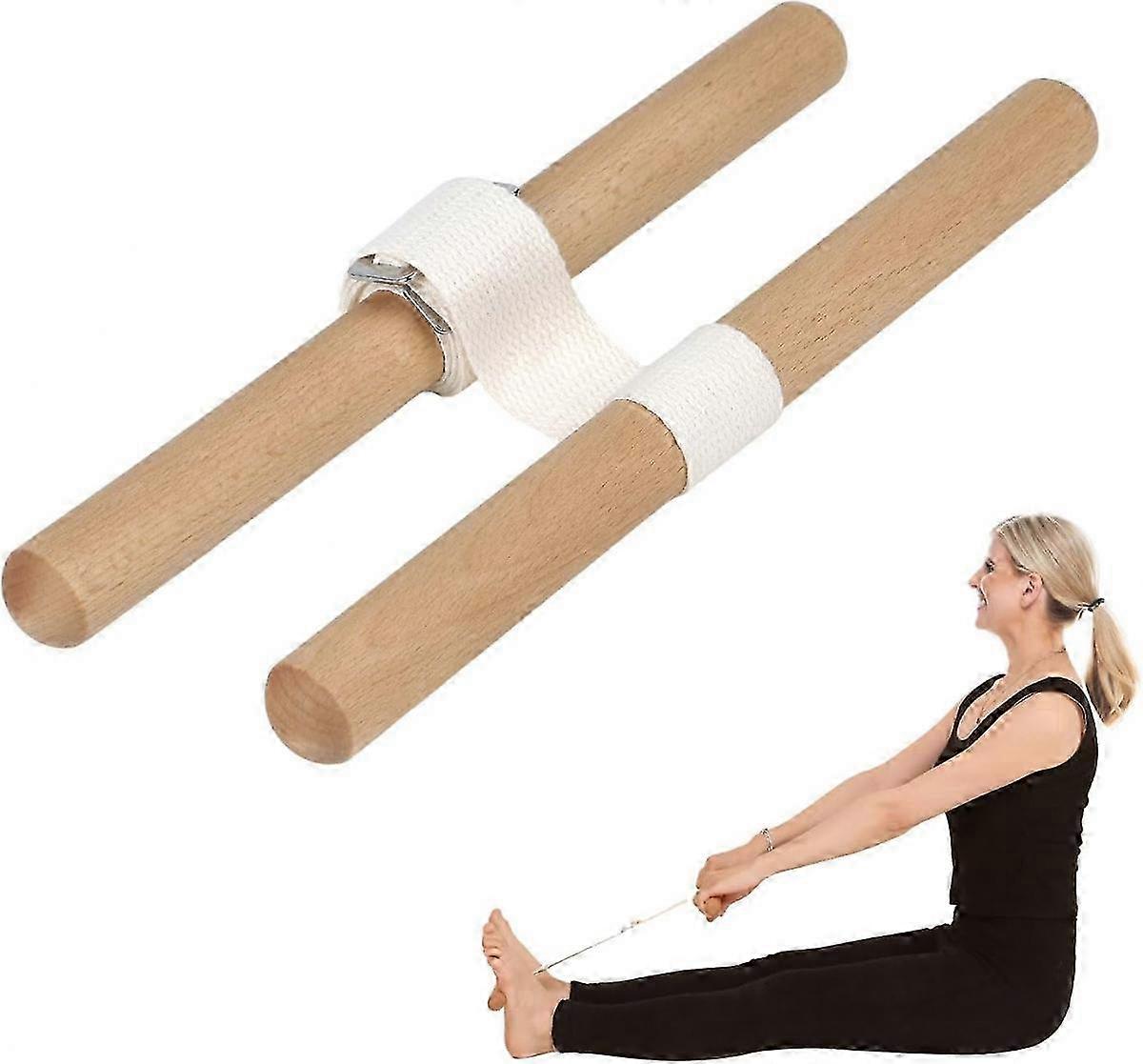 Versatile Stretching Tool: This Stretching Strap with a wooden handle is designed for full body flexibility, serving as a calf stretcher, foot stretcher, and fascia stretcher to enhance your overall flexibility<br> Enhances Flexibility: Ideal for stretching muscles in the shoulders, back, hips, and thighs, this Yoga strap helps improve your range of motion and muscle elasticity<br> Universal Fit: Suitable for everyone regardless of yoga or fitness level. The Stretch Strap accommodates all body types while providing ample space in the foot section with secure hand grips<br> Adjustable Design: The Stretch Band can be easily adjusted to fit any body size. The wooden part provides enough space for feet insertion into the loop while ensuring a firm grip on the hand section<br> Comfortable Wooden Handle: Stretching Equipment Equipped with a comfortable round wooden handle that ensures you maintain comfort during every practice while effectively targeting thigh and calf stretches<br> Specification:<br> Material: Wood<br> Size Chart:<br> 32x3x3cm /12.60x1.18x1.18inch<br> Package Includes:<br> 1 Stretching Strap<br> 2 Rods<br> Note:<br> Please allow slightly errors 1-2cm /0.39inch-0.79inch differences due to manual measurement.